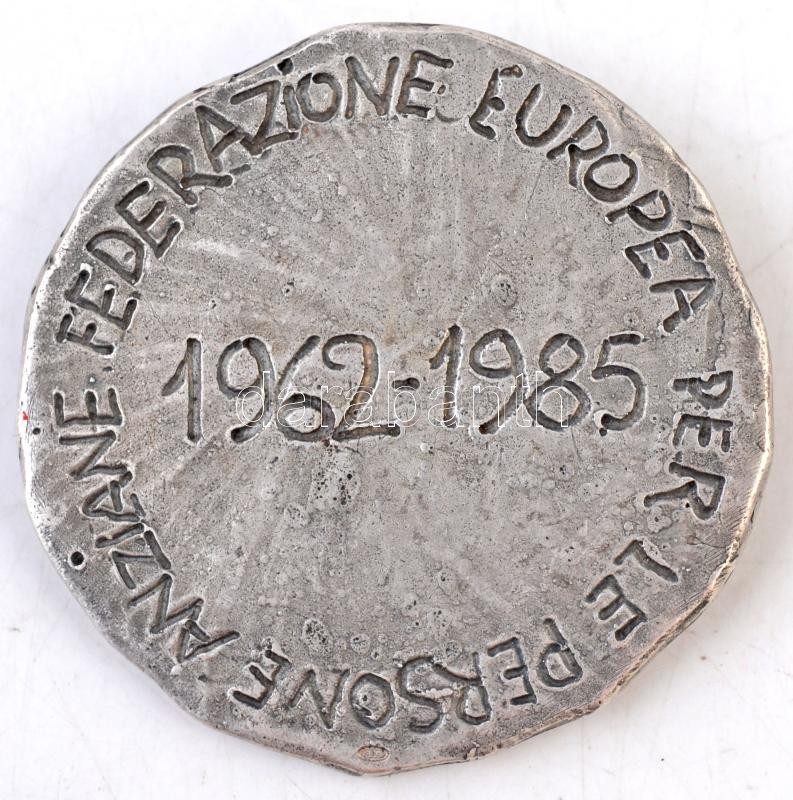 ~1985. "Idősek Európai Szövetsége 1962-1985 / E.U.R.A.G" jelzett Ag emlékérem (23,78g/0.800/42-43mm) T:2