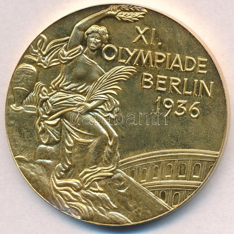DN "1936. XI. Olimpiai Játékok - Berlin" aranyozott Br modern emlékérem (50mm) T:2 ph.