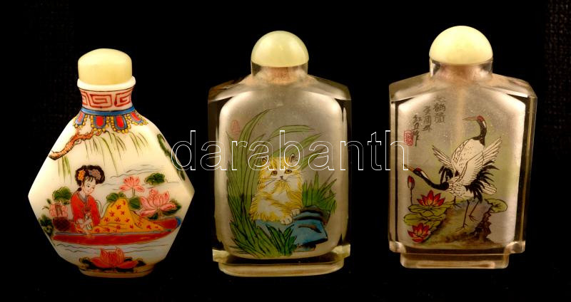 Beschreibung: Távol keleti tubákos szelencék, kézzel festett több rétegű üveg, jó állapotban, jelzett, m:6-7 cm