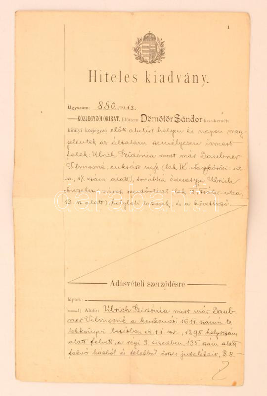 1913 Kecskemét. Hiteles kiadvány(közjegyzői okirat) adásvételi szerződ... https://www.darabanth.com/de/278-Fernauktion/278.0/Andere-Sammelgebiete/Dokument~37/1913-Kecskemet-Hiteles-kiadvanykozjegyzoi-okirat-adasveteli-szerzodesrol~II1427737