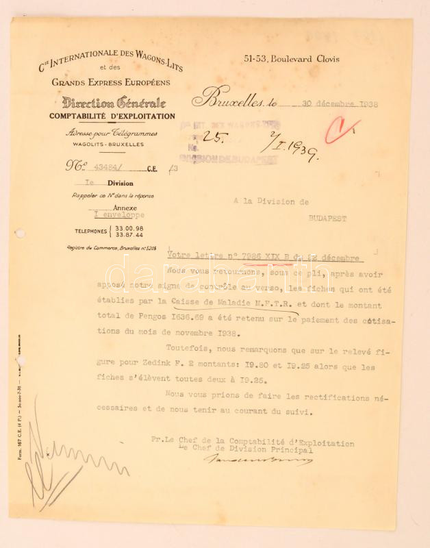 1938 Bruxelles, Cie Internationale des Wagons-Lits te des Grands Expre... https://www.darabanth.com/de/278-Fernauktion/278.0/Andere-Sammelgebiete/Dokument~37/1938-Bruxelles-Cie-Internationale-des-Wagons-Lits-te-des-Grands-Express-europeens-fejleces-level~II1429115