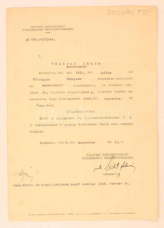 1946-1953 Budapest Székesfővárosi Közlekedési Részvénytársaság által k... https://www.darabanth.com/de/278-Fernauktion/278.0/Andere-Sammelgebiete/Dokument~37/1946-1953-Budapest-Szekesfovarosi-Kozlekedesi-Reszvenytarsasag-altal-kiadott-sztahanovista~II1429145