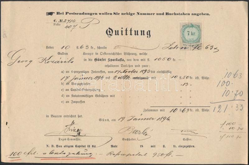 Beschreibung: 62 db nagyrészt okmánybélyeges számla és nyugta, főleg az 1870-1890-es évekből