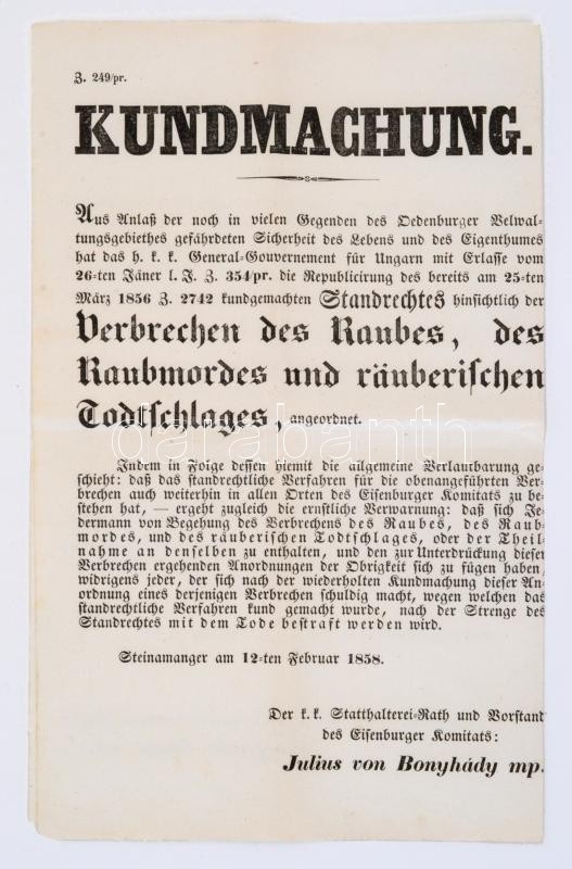 1858 Statáriumra figyelmeztető kétnyelvű hirdetmény. soproni kerület. ... https://www.darabanth.com/de/278-Fernauktion/278.0/Andere-Sammelgebiete/Drucksachen~5/1858-Statariumra-figyelmezteto-ketnyelvu-hirdetmeny-soproni-kerulet-44x34-cm~II1432619