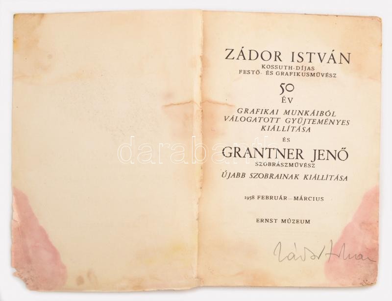 1929-60 Vegyes Kiállítási katalógus, 8db ebből az egyik Zádor István a... https://www.darabanth.com/de/278-Fernauktion/278.0/Andere-Sammelgebiete/Drucksachen~5/1929-60-Vegyes-Kiallitasi-katalogus-8db-ebbol-az-egyik-Zador-Istvan-alairassal-kulonbC3~II1427018