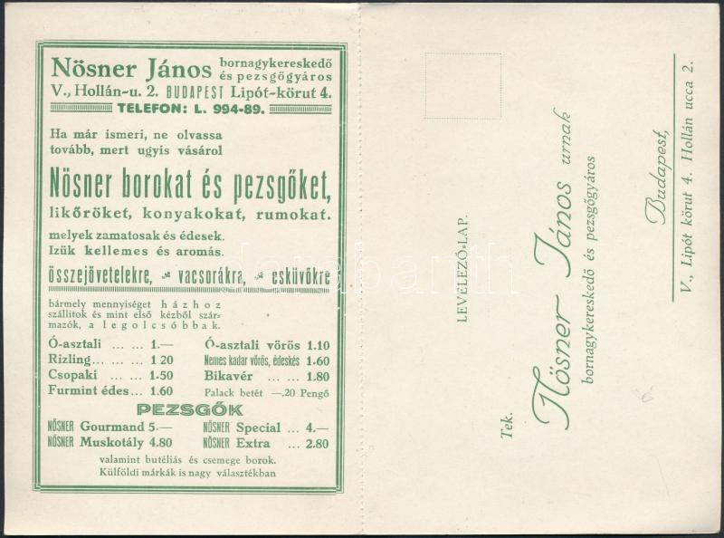 1929 Nösner János bornagykereskedő és pezsgőgyáros levelezőlap/árlapja https://www.darabanth.com/de/278-Fernauktion/278.0/Andere-Sammelgebiete/Drucksachen~5/1929-Nosner-Janos-bornagykereskedo-es-pezsgogyaros-levelezolaparlapja~II1428634