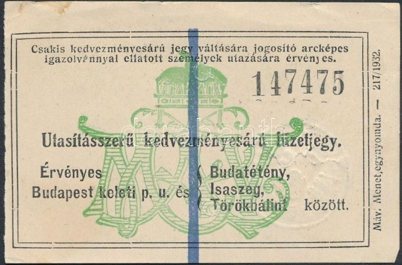 Beschreibung: 1937 Bp., MÁV utasításszerű kedvezményesárú füzetjegy Budatétény-Isaszeg-Törökbálint között