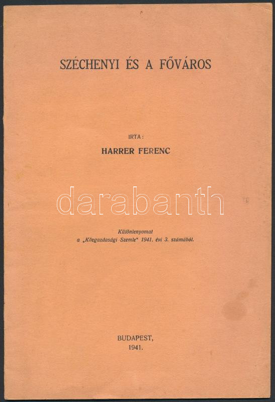 1941 Harrer Ferenc: Széchenyi és a főváros. Különlenyomat a Közgazdasá... https://www.darabanth.com/de/278-Fernauktion/278.0/Andere-Sammelgebiete/Drucksachen~5/1941-Harrer-Ferenc-Szechenyi-es-a-fovaros-Kulonlenyomat-a-Kozgazdasagi-Szemle-1941-evi-3~II1429786