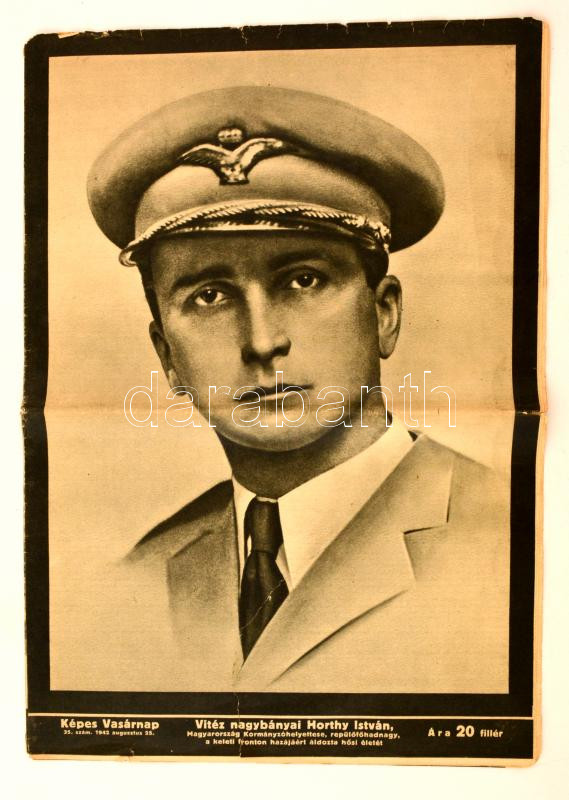 1942 Képes Vasárnap 08. 25-i száma Vitéz nagybányai Horthy István hal... https://www.darabanth.com/de/278-Fernauktion/278.0/Andere-Sammelgebiete/Drucksachen~5/1942-Kepes-Vasarnap-08-25-i-szama-Vitez-nagybanyai-Horthy-Istvan-halalaval-foglalkozo-eml~II1426947