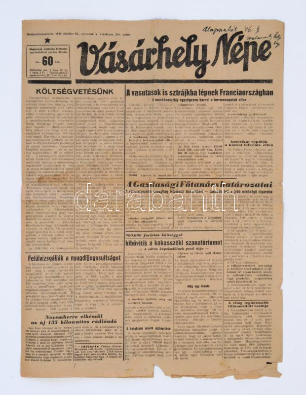 1948 A hódmezővásárhelyi Vásárhely Népe 5. évf. 244. száma érdekes írá... https://www.darabanth.com/de/278-Fernauktion/278.0/Andere-Sammelgebiete/Drucksachen~5/1948-A-hodmezovasarhelyi-Vasarhely-Nepe-5-evf-244-szama-erdekes-irasokkal-a-szegedi-~II1431347