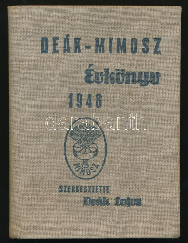 1948 Deák-Mimusz Évkönyv. Szerkesztette Deák Lajos. Budapest, 1948, MI... https://www.darabanth.com/de/278-Fernauktion/278.0/Andere-Sammelgebiete/Drucksachen~5/1948-Deak-Mimusz-Evkonyv-Szerkesztette-Deak-Lajos-Budapest-1948-MIMOSZ-Kiadoi-egeszvaszo~II1426303