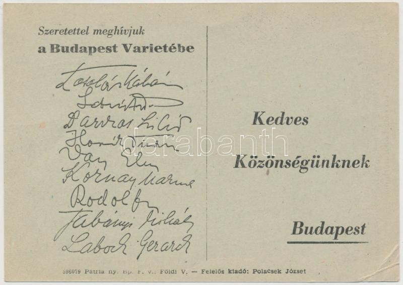 1959 A Budapest-Varieté levelezőlapja, nyomtatott aláírásokkal https://www.darabanth.com/de/278-Fernauktion/278.0/Andere-Sammelgebiete/Drucksachen~5/1959-A-Budapest-Variete-levelezolapja-nyomtatott-alairasokkal~II1428435