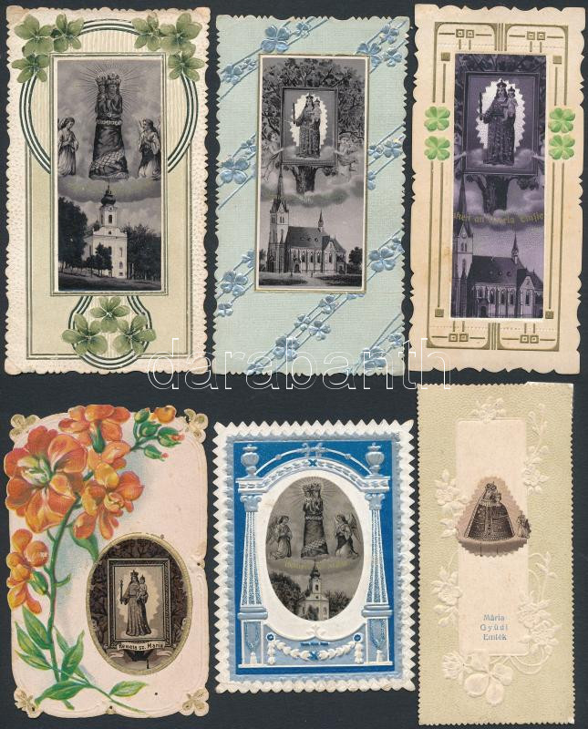 Beschreibung: cca 1900 Vegyes, dombornyomott, szecessziós, Mária kegyhelyes szentképek, 6db, különböző méreteben és minőségben, cca 10x6cm