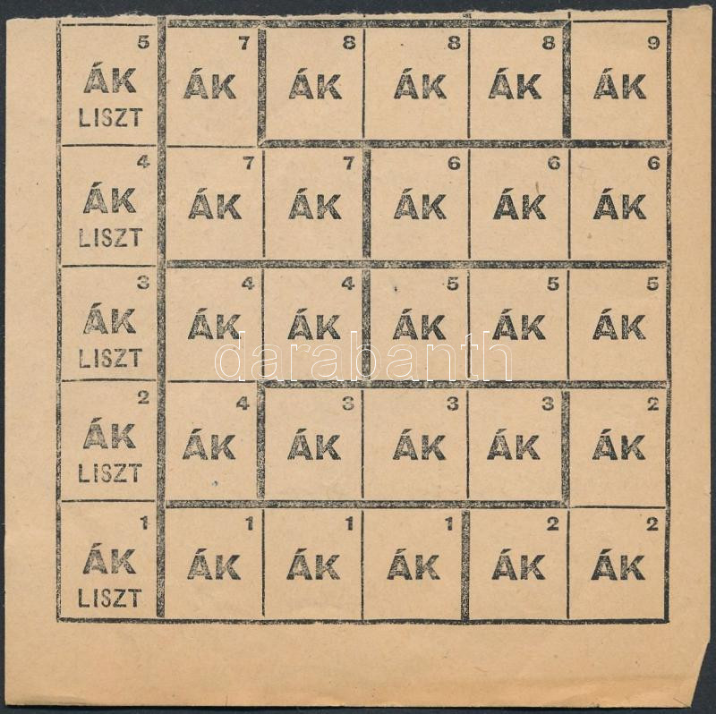 cca 1940 ÁK (Általános közellátási) jegy, lisztjegy, jó állapotban. https://www.darabanth.com/de/278-Fernauktion/278.0/Andere-Sammelgebiete/Drucksachen~5/cca-1940-AK-Altalanos-kozellatasi-jegy-lisztjegy-jo-allapotban~II1427428