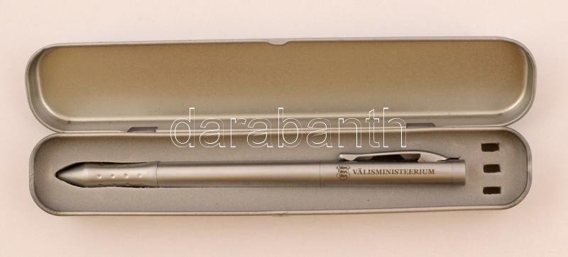 Észt külügyminisztériumi toll lézer pointerrel és lámpával, fém dobozban /