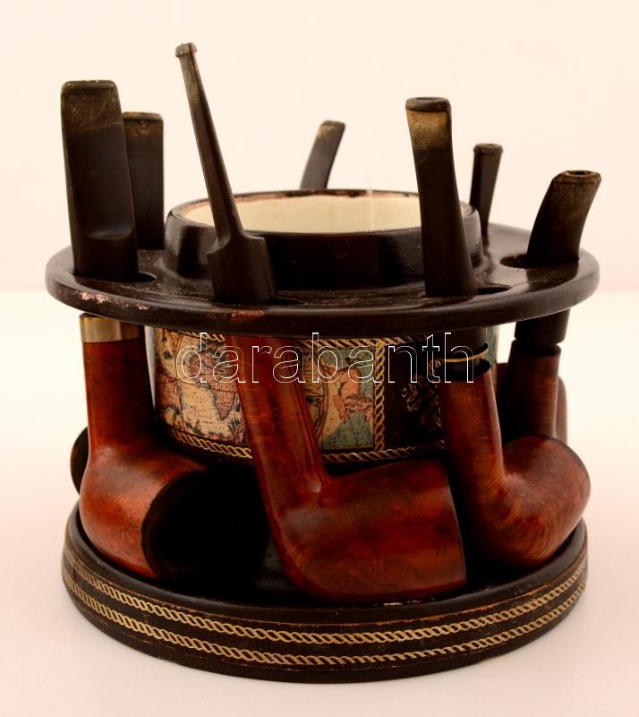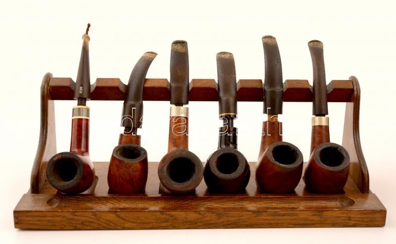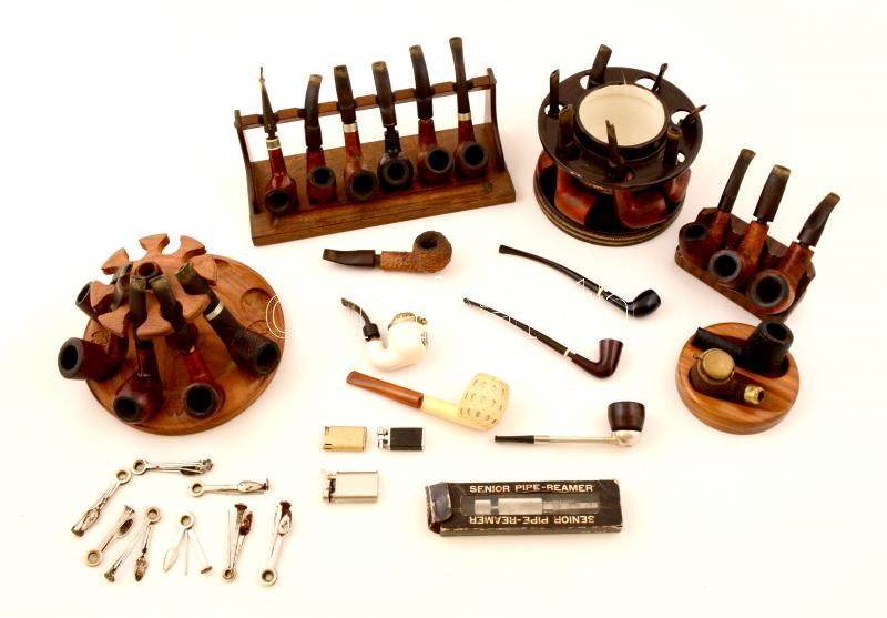 Beschreibung: Pipagyűjtemény különféle márkájú és anyagú pipákkal, pipatartókkal, pipaszurkálókkal, összesen:12+ 37 db
