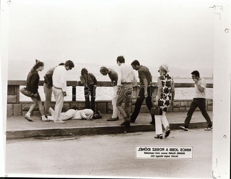 ,,Nincs szebb a rossz időnél" című film állóképei, 30 db negatív, ezekről készültek a mozik előcsarnokában kiállított, új filmek reklámozására szolgáló fényképek, 4x7 cm