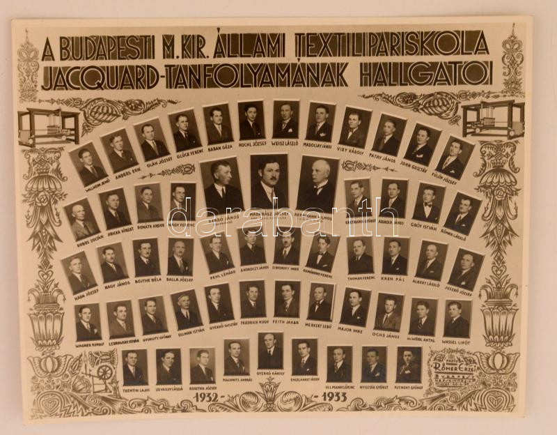 1933 Budapest, Textilipariskola Jacquard-tanfolyamának hallgatói, kist... https://www.darabanth.com/de/278-Fernauktion/278.0/Andere-Sammelgebiete/Foto~40/1933-Budapest-Textilipariskola-Jacquard-tanfolyamanak-hallgatoi-kistablo-56-nevesitett-portre~II1426847