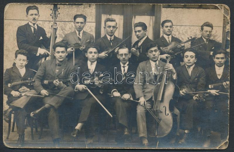 cca 1910-1920 Zenészek, fotólap, sarkain törésnyomokkal, 9x13 cm https://www.darabanth.com/de/278-Fernauktion/278.0/Andere-Sammelgebiete/Foto~40/cca-1910-1920-Zeneszek-fotolap-sarkain-toresnyomokkal-9x13-cm~II1428040