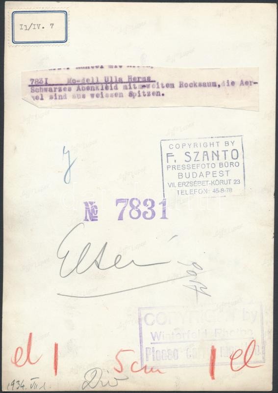 cca 1934 Amerikai női divatfotó, Winterfeld műterméből, hátoldalon a S... https://www.darabanth.com/de/278-Fernauktion/278.0/Andere-Sammelgebiete/Foto~40/cca-1934-Amerikai-noi-divatfoto-Winterfeld-mutermebol-hatoldalon-a-Szanto-F-Muszaki-es-~II1431835