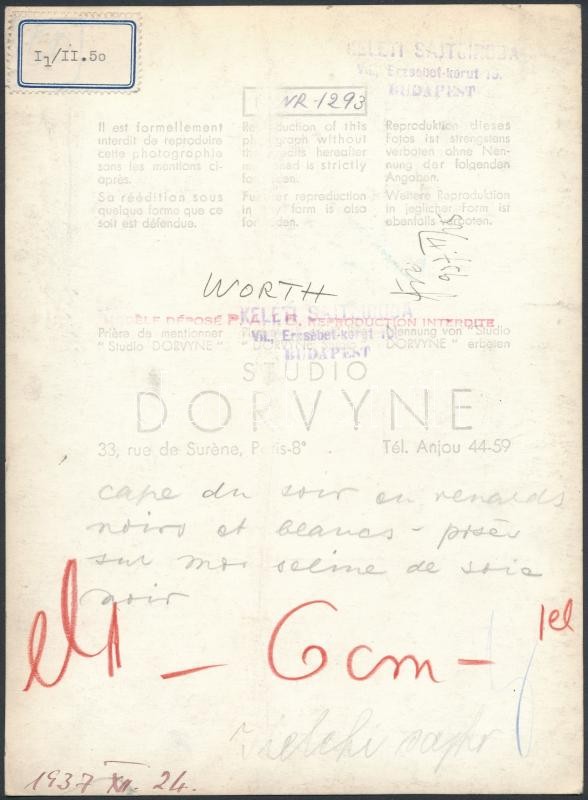 cca 1937 Amerikai női divatfotó, Studio Dorvyne műterméből, hátoldalon... https://www.darabanth.com/de/278-Fernauktion/278.0/Andere-Sammelgebiete/Foto~40/cca-1937-Amerikai-noi-divatfoto-Studio-Dorvyne-mutermebol-hatoldalon-Keleti-Sajtoiroda-pecs~II1432260