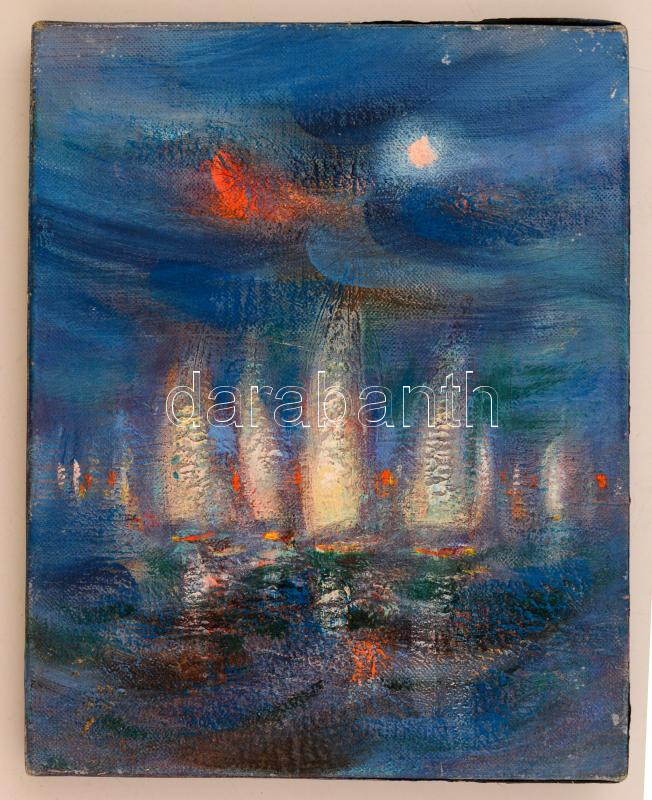 Beschreibung: Jelzés nélkül: Holdvilágos vitorlásverseny, olaj, vászon, 24,5×18,5 cm