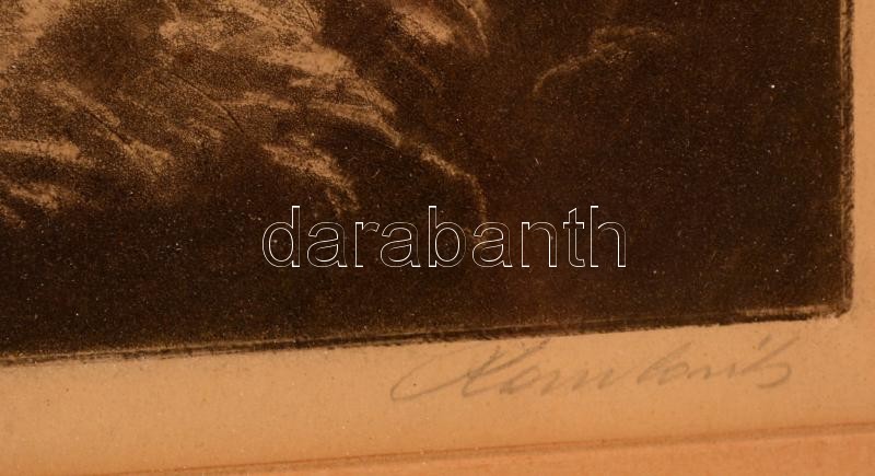 Beschreibung: Paulovits Pál (1892-1975): Legyen meg a te akaratod. Rézkarc, papír, jelzett, üvegezett keretben, 31×26 cm