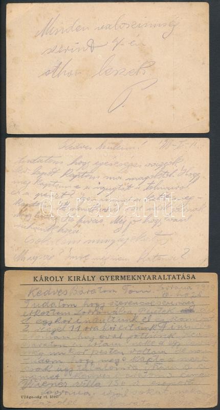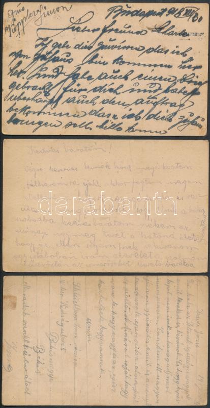Beschreibung: cca 1914-1918 I. világháborús levelezőlapok, 6 db, személyes hangvételű üzenetekkel, 9x14 cm.