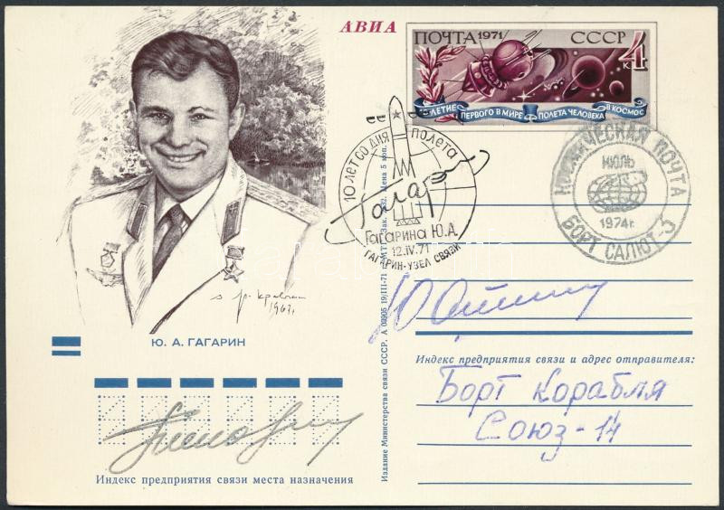 Pavel Popovics (1930-2009) és Jurij Artyuhin (1930-1998) szovjet űrhajósok aláírásai levelezőlapon /