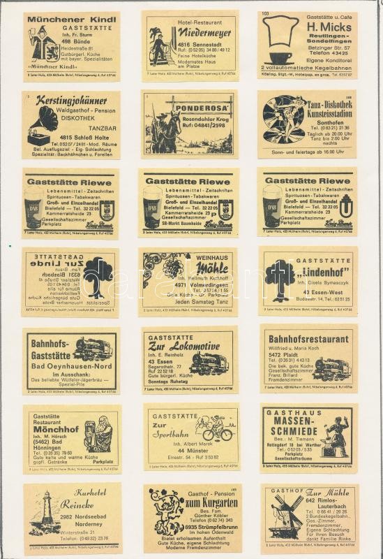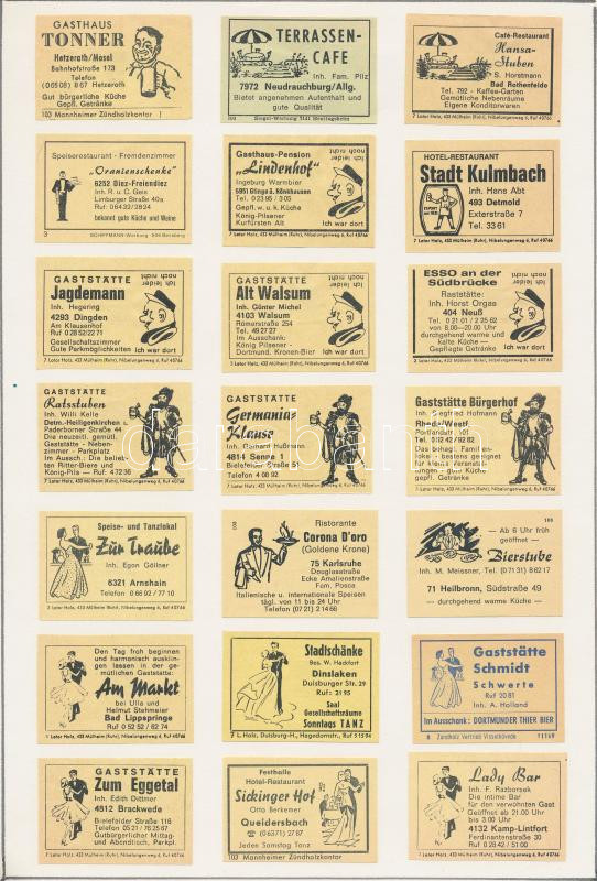 Beschreibung: 206 db német gyufacímke 10 db kartonlapra ragasztva (Vendéglők..stb.)
