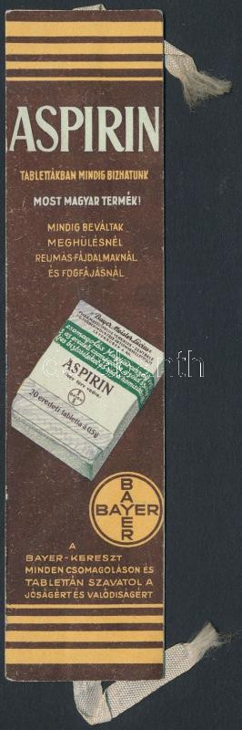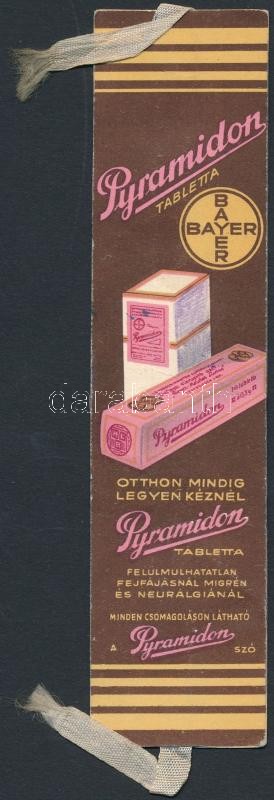 Bayer Aspirin és Pyramidion reklámos könyvjelző, 17x4 cm https://www.darabanth.com/de/278-Fernauktion/278.0/Andere-Sammelgebiete/Werbungen~42/Bayer-Aspirin-es-Pyramidion-reklamos-konyvjelzo-17x4-cm~II1428619