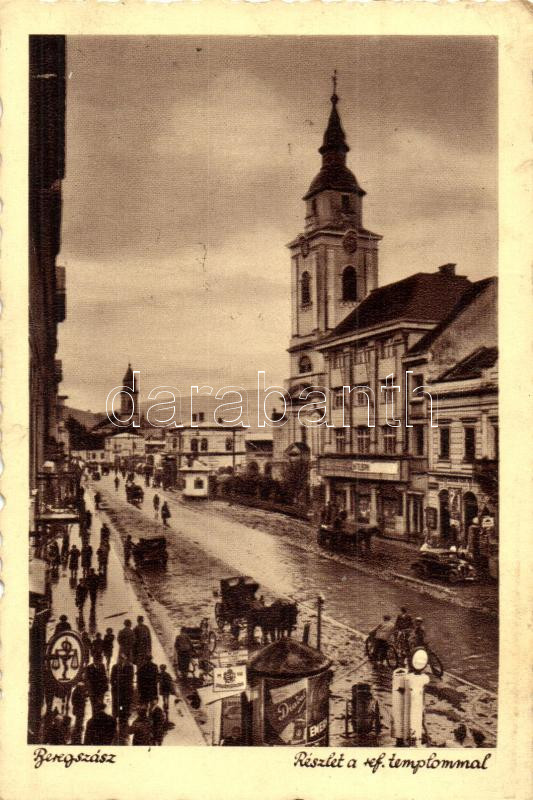 Beregszász, Berehove; Utcarészlet, református templom / street, church... https://www.darabanth.com/de/278-Fernauktion/278.0/Ansichtskarten/Karpatenukraine~200008/Beregszasz-Berehove-Utcareszlet-reformatus-templom-street-church-EK~II1426188