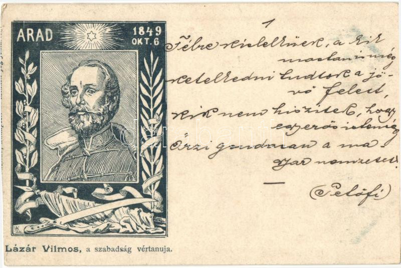 1899 Arad, 1849 Október 6., Lázár Vilmos a szabadság vértanúja / marty... https://www.darabanth.com/de/278-Fernauktion/278.0/Ansichtskarten/Siebenburgen~200006/1899-Arad-1849-Oktober-6-Lazar-Vilmos-a-szabadsag-vertanuja-martyr-vagott-cut~II1430632