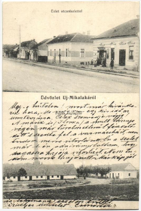 Beschreibung: Mikelaka, Új-Mikelaka, Micalaca; Pollák téglagyár, utca részlet, Bonyhádi Károly üzlete / brick factory, street, shop