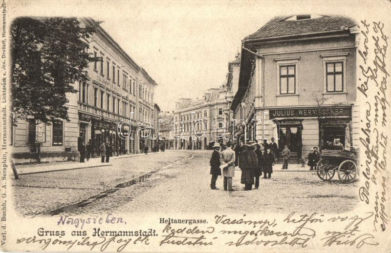 Nagyszeben, Hermannstadt, Sibiu; Heltauer utca, Julius Wermescher üzle... https://www.darabanth.com/de/278-Fernauktion/278.0/Ansichtskarten/Siebenburgen~200006/Nagyszeben-Hermannstadt-Sibiu-Heltauer-utca-Julius-Wermescher-uzlete-street-shop-EK~II1427537