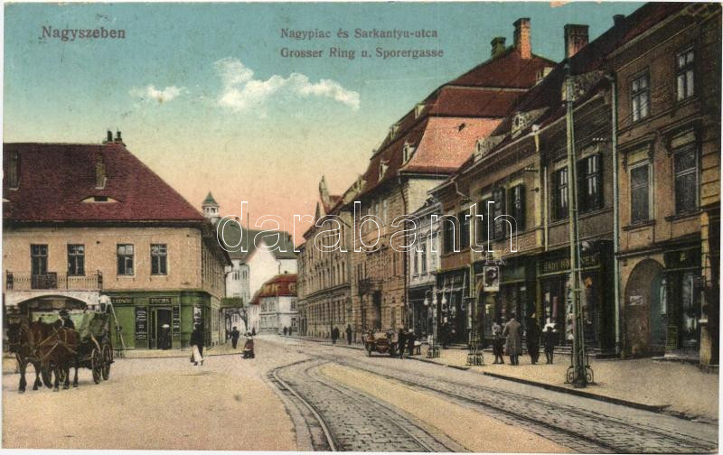 Nagyszeben, Hermannstadt, Sibiu; Nagypiac és Sarkantyú utca, Ludwig Fu... https://www.darabanth.com/de/278-Fernauktion/278.0/Ansichtskarten/Siebenburgen~200006/Nagyszeben-Hermannstadt-Sibiu-Nagypiac-es-Sarkantyu-utca-Ludwig-Fuchs-uzlete-streets-shops~II1427525