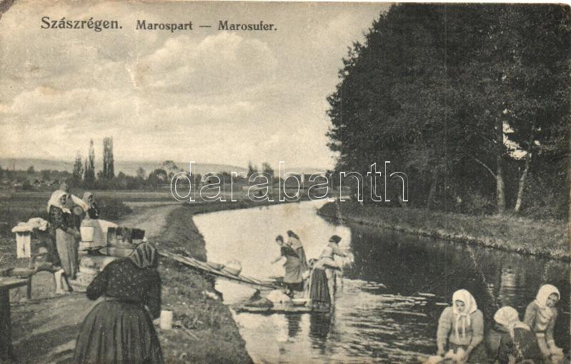 Beschreibung: Szászrégen, Reghin; Maros part, mosónők / river bank, washing women (fa)