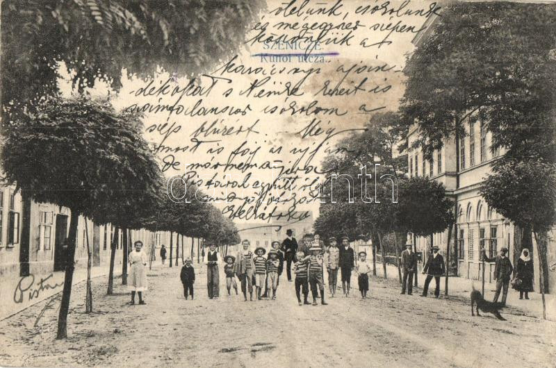 Beschreibung: Szenice, Szenicz; Kunoi utca, hátoldalára ragasztott lappal / street (fl)