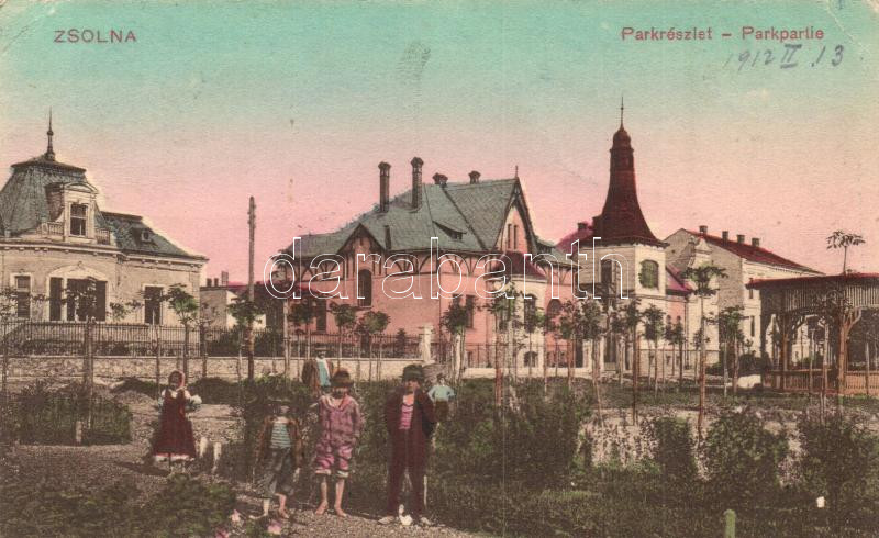 Zsolna, Zilina; park, villák / park, villas (EK) https://www.darabanth.com/de/278-Fernauktion/278.0/Ansichtskarten/Slowakei~200007/Zsolna-Zilina-park-villak-park-villas-EK~II1431104