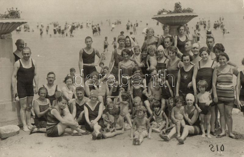 Beschreibung: 1927 Siófok, Balaton part, fürdőzők, Nagy István fotó szalon, photo