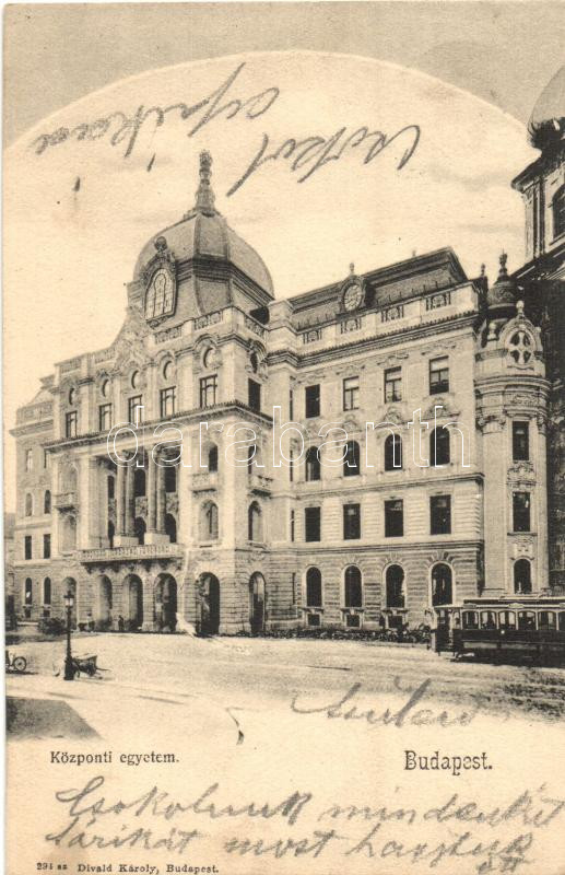 Budapest V. Központi Egyetem, villamos, kiadja Divald Károly https://www.darabanth.com/de/278-Fernauktion/278.0/Ansichtskarten/Ungarn~200005/Budapest-V-Kozponti-Egyetem-villamos-kiadja-Divald-Karoly~II1430392