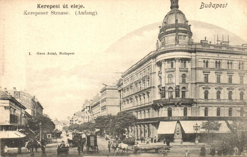 Beschreibung: Budapest VIII. Kerepesi út, Életbiztosító Részvénytársaság, Szikszay Ferenc üzlete, Szabó Ferenc bútortermei (EK)