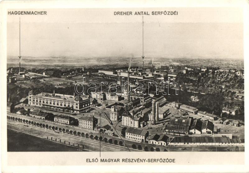 Budapest X. Kőbánya, Első magyar részvény-serfőzde; Haggenmacher, Dreh... https://www.darabanth.com/de/278-Fernauktion/278.0/Ansichtskarten/Ungarn~200005/Budapest-X-Kobanya-Elso-magyar-reszveny-serfozde-Haggenmacher-Dreher-Antal-serfozdei~II1427984