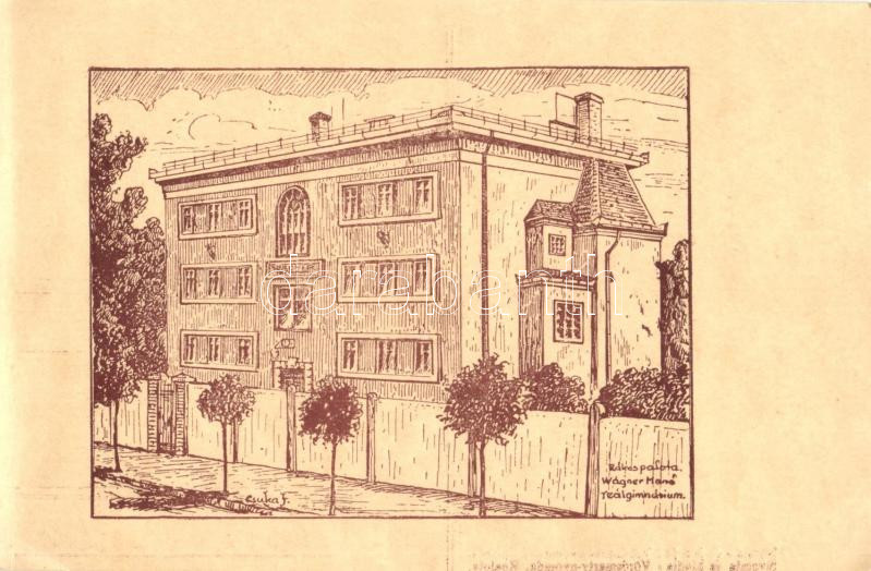 Budapest XV. Rákospalota, Wágner Manó reálgimnázium s: Csuka https://www.darabanth.com/de/278-Fernauktion/278.0/Ansichtskarten/Ungarn~200005/Budapest-XV-Rakospalota-Wagner-Mano-realgimnazium-s-Csuka~II1430551