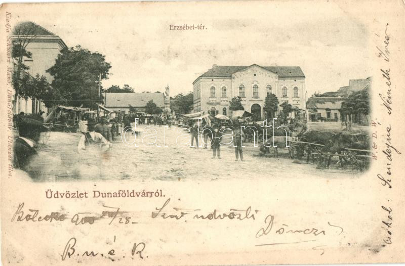 Dunaföldvár, Erzsébet tér, piac, kiadja Schwarz Manó https://www.darabanth.com/de/278-Fernauktion/278.0/Ansichtskarten/Ungarn~200005/Dunafoldvar-Erzsebet-ter-piac-kiadja-Schwarz-Mano~II1430389