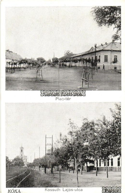 Kóka, Piac tér, Kossuth Lajos utca, kiadja Schweitzer Lipót https://www.darabanth.com/de/278-Fernauktion/278.0/Ansichtskarten/Ungarn~200005/Koka-Piac-ter-Kossuth-Lajos-utca-kiadja-Schweitzer-Lipot~II1427762
