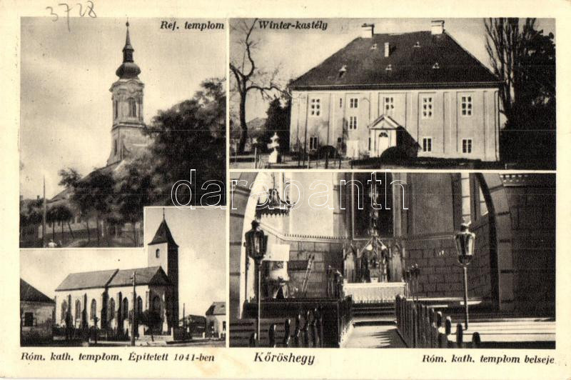Kőröshegy, Winter kastély, római katolikus és református templomok (fa... https://www.darabanth.com/de/278-Fernauktion/278.0/Ansichtskarten/Ungarn~200005/Koroshegy-Winter-kastely-romai-katolikus-es-reformatus-templomok-fa~II1427712