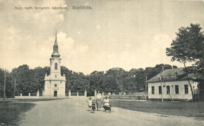 Sajóörös, Római katolikus templom, iskola, Hangya Szövetkezet kiadása https://www.darabanth.com/de/278-Fernauktion/278.0/Ansichtskarten/Ungarn~200005/Sajooros-Romai-katolikus-templom-iskola-Hangya-Szovetkezet-kiadasa~II1430371