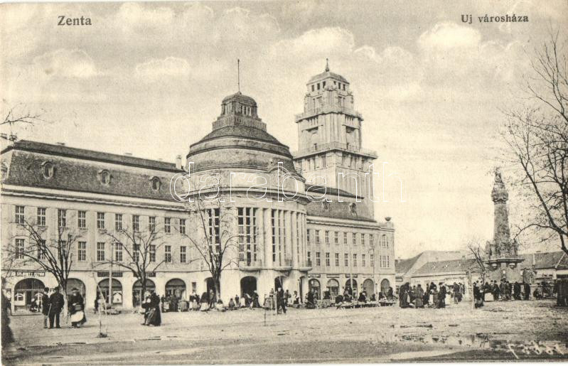 Zenta, Senta; Új városháza, üzletek / new town hall, shops https://www.darabanth.com/de/278-Fernauktion/278.0/Ansichtskarten/Vojvodina~200010/Zenta-Senta-Uj-varoshaza-uzletek-new-town-hall-shops~II1430298
