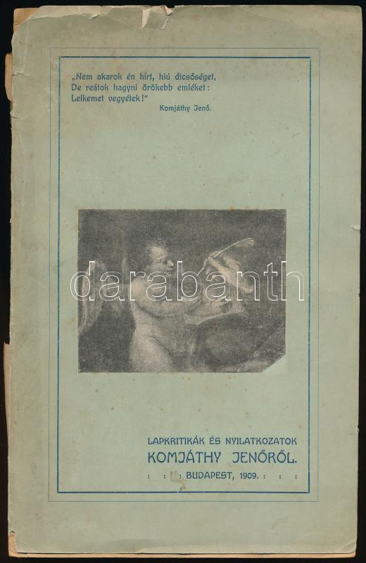 Lapkritikák és nyilatkozatok Komjáthy Jenőről. Komárom, 1909, Spitzer ... https://www.darabanth.com/de/278-Fernauktion/278.0/Bucher/Bucher-Sonstige-Raritaten~33/Lapkritikak-es-nyilatkozatok-Komjathy-Jenorol-Komarom-1909-Spitzer-Sandor-Kiadoi-illuszt~II1428722
